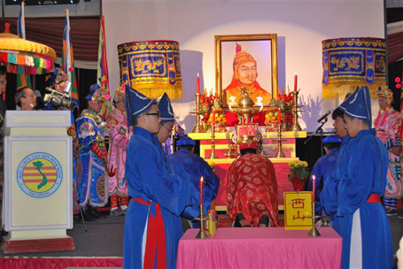 Tiếp theo phần cung nghinh linh vị Đại Đế Quang Trung do đoàn quân tướng trong y phục cổ truyền vào an vị trên bàn thờ, sau đó 3 hồi chuông trống được gióng lên, mọi người đều đứng trang nghiêm để ban tế lễ cữ hành lễ dâng hương theo nghi thức cổ truyền có phần đọc nghệ chúc kể về công trạng lẫy lừng của Đại Đế Quang Trung trong chiến thắng Đống Đa và xin ngài phù hộ cho đất nước sớm có tự do dân chủ, nhân quyền được tôn trọng, lãnh thổ, lãnh hải được vẹn toàn.