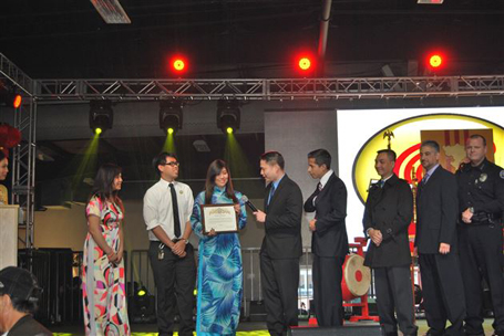 (Vy Trần SGT) - Mặc dầu ở một địa điểm mới, nhưng sự thành công của hội chợ Tết năm nay là nhờ vào sự tin yêu của quý đồng hương, quý bậc trưởng thượng, quý hội đoàn đoàn thể trong cộng đồng, đã hết lòng hổ trợ cho chúng em. Chúng em nguyện sẽ không bao giờ làm phụ lòng thương yêu của quý vị.