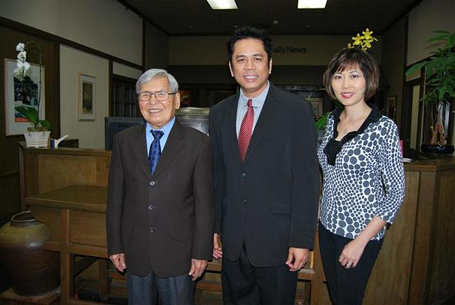 Từ trái: nhạc sĩ Anh Bằng, nhạc sĩ Cao Minh Hưng và phu nhân Ngọc Bích.