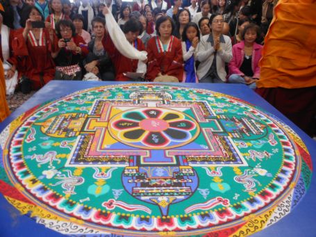 Mandala là một loại đá quý được xay nhỏ trộn lẫn nhiều màu sắc được quý sư kiến tạo trên một mặt phẳng.