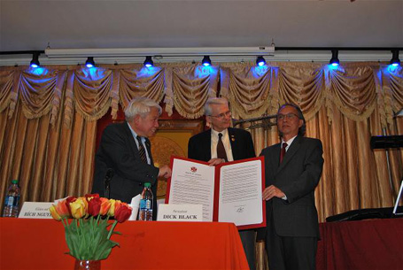 Westminster (Vân Giang) -Thượng-Nghị-Sĩ Tiểu Bang Virginia Ông Dick Black đã đến Quận Cam vào các ngày 29 và 30 tháng 3 năm 2014 để tham dự ngày vinh danh Việt Nam Cộng Hòa theo Nghị Quyết J.R 455 của Lưỡng Viện Quốc Hội Tiểu Bang Virginia, cùng đi với ông có Giáo Sư Nguyễn Ngọc Bích thuộc Nghị Hội Toàn Quốc Người Việt tại Hoa kỳ, đồng thời ông cũng là Chủ Tịch Ủy Ban Lâm Thời VNCH, một tổ-chức được thành-lập vào tháng 10 năm 2010 nhằm phục hồi danh dự cho Miền Nam tự do và các chiến sĩ đã chiến đấu dưới màu cờ vàng ba sọc đỏ.
