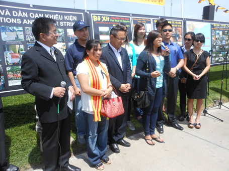 Ông Trần Vệ đại diện ban tổ chức phát biểu: Cách đây 39 năm Cộng Sản Bắc Việt đã xua quân cưỡng chiếm miền Nam Việt Nam bất kể hiệp định đình chiến mà họ đã ký kết với đồng minh, toàn dân ta vì không thể sống chung với Cộng Sản nên đã phải bằng con đường này hay con đường khác tìm đường bỏ nước ra đi tìm tự do, số còn lại bị bắt đi tù đày trong các trại tập trung, bị đàn áp chịu biết bao đau thương, gian khổ.