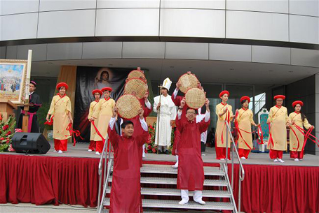 Trước khi chương trình bắt đầu, đội trống cộng đồng biểu diễn những màn múa trống ngoạn mục, Sau đó, hát Thánh ca và nghe trình bày về tiểu sử hai vị Thánh Giáo Hoàng với rất nhiều chi tiết, trong đó cả hai vị Giáo Hoàng lúc còn sinh tiền đều rất qúy mến dân tộc Việt Nam nên mọi người tin rằng, sau khi trở nên hai vị Thánh của Chúa, các Ngài sẽ hộ trì cho dân tộc Việt nam sớm thoát ách cộng sản vô thần.