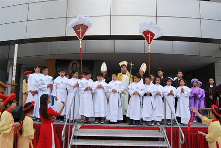 Khoảng 5 ngàn giáo dân Công giáo đến tham dự thánh lễ với sự hân hoan, vui mừng trước hai vị Giáo Hoàng Gioan XXIII và Gioan Phaolo II vừa được phong Hiển Thánh tại giáo đô Rôma.