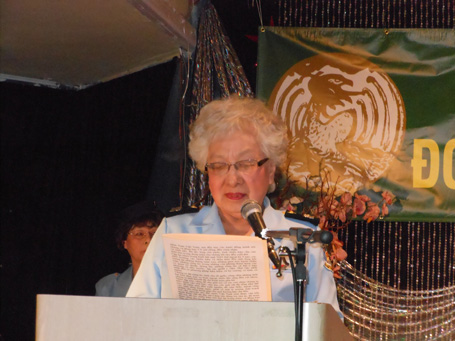 Trưởng ban tổ chức con chim đầu đàn của hội nữ quân nhân QLVNCH tại hải ngoại bà Trung Tá Hạnh Nhơn phát biểu: