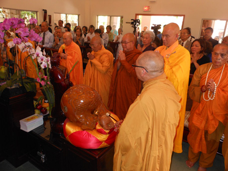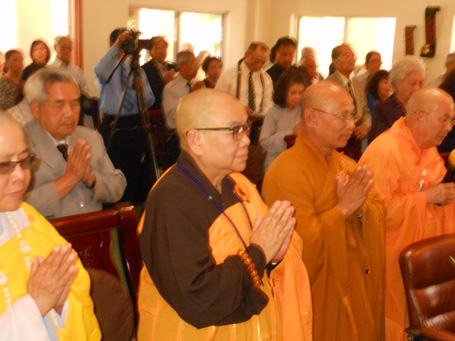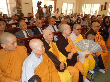 Chương trình cầu nguyện với sự tham dự của hòa thượng Thích Viên Thành chùa Điều Ngự, hòa thượng Thích Chơn Trí chùa Pháp Vân, hòa thượng thích Quảng Thanh chùa Bảo Quang, sư bà Thích Nữ Diệu Từ chùa Diệu Quang cùng chư tôn Đức Tăng ni các chùa và các tự viện tại Nam California, đại diện Cộng Đồng Công Giáo giáo phận Orange ông Lâm Kim Bảo, quý vị đại diện các hội đoàn đoàn thể trong cộng đồng cùng rất đông quý đồng hương Phật Tử khắp nơi về dự.