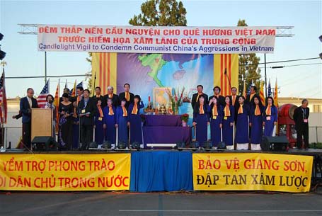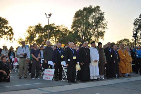 Sau đó chương trình thắp nến cầu nguyện, Ban tổ chức mời qúy vị Giám Mục Kevin Vann, Mai Thanh Lương, Hội Đồng Liên Tôn có: Giám Mục (TL) Trần Thanh Vân, Hòa Thượng Thích Minh Nguyện, Hiền Tài Phạm Văn Khảm, Giáo Sư Nguyễn Thanh Giàu, và qúy Chư Tôn Giáo Phẩm Phật Giáo trong đó có HT. Thích Chơn Thành, Phó Thượng Thủ Giáo Hội Phật Giáo Việt Nam Trên Thế Giới, Viện Chủ Chùa Liên Hoa, HT, Thích Quảng Thanh, Chủ Tịch Hội Đồng Điều Hành Giáo Hội PGVN/Trên Thế Giới, Viện Chủ Chùa Bảo Quang, Hòa Thượng Thích Viên Lý, Viện Chủ Chùa Diệu Pháp và Điều Ngự, Thượng Tọa Thích Viên Huy, Trụ Trì Chùa Điều Ngự, TT. Thích Quảng Long và qúy Linh Mục, Mai Khải Hoàn, Nguyễn Thái, Thái Quốc Bảo, Nguyễn Dũng, Phạm Văn Chính, Nguyễn Toàn Minh, Nguyễn Tiến Bình, Mục Sư David Huỳnh cùng lên sân khấu để dâng lời cầu nguyện theo từng tín ngưởng riêng, trong số có Đức Giám Mục Mai Thanh Lương, đại diện Công Giáo, HT. Thích Chơn Thành, đại diện Phật Giáo, Giám Mục Tin Lành Trần Thanh Vân, đại diện Tin Lành, Hiền Tài Phạm Văn Khảm, đại diện Cao Đài, Giáo Sư Nguyễn Thanh Giàu, đại diện Hòa Hảo.