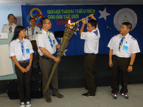 Nghi thức rước đuốc truyền thống Đại Hội do các thanh Thiếu Niên tham dự đảm trách