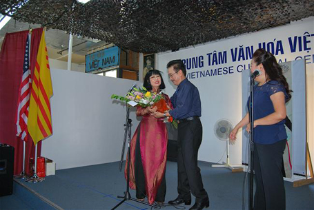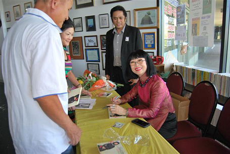 Trước khi chia tay, đồng hương đã được Banh Ca Bạch Yyến ký tặng CD Tình Ca Lam Phương.