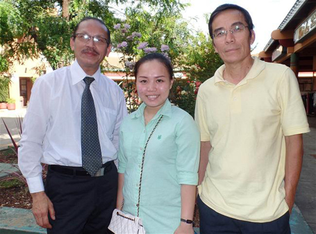 Luật sư Nguyễn Tâm, Huỳnh Thúy Ngân, nhà báo Trần Củng Sơn trong khu thương xá Lion San Jose.