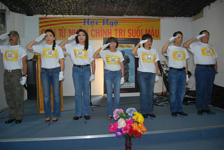 Tiếp theo là phần trình diễn văn nghệ đấu tranh, tình ca về Lính do anh chị em trong Biệt Đội Văn Nghệ trình diễn. Trong lúc nầy Ban tổ chức cũng đã khoản đãi bữa ăn trưa, mọi người tham dự cùng ăn cùng thưởng thức chương trình văn nghệ trong không khí thân tình, một số anh em ra phía ngoài vừa hút thuốc vừa tâm tình về những mẩu chuyện trong tù cách đây 39 năm mà cứ tưởng mới đó ngày nào.