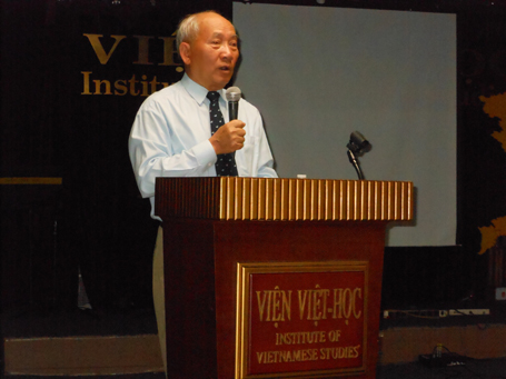 Cô Lâm Dung đại diện Viện Việt Học gởi lời chào mừng đến mọi người tham dự và giới thiệu đôi nét về giáo sư Đỗ Quý Toàn: