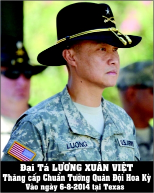 FORT HOOD,Texas(VB) - Trên băng YouTube ghi lại buổi lễ Đại tá Lương Xuân Việt được thăng cấp Chuẩn tướng Lục quân Hoa Kỳ hôm Thứ Tư 6-8-2014, tân Chuẩn Tướng Lương Xuân Việt khi phát biểu bằng tiếng Việt đã nói cảm ơn quân độiVNCH, cảm ơn đất nước VNCH. và nói câu nói bất hủ của Danh Tướng Lý thường Kiệt, “Nam Quốc Sơn Hà Nam Đế Cư.”