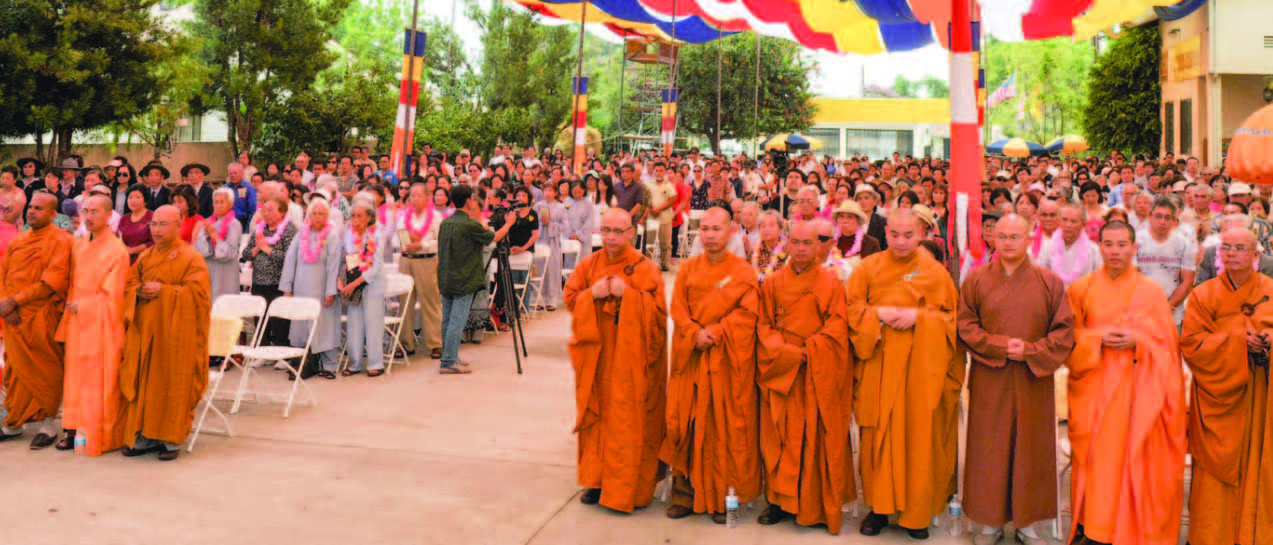 Đến nghi lễ chào Quốc Kỳ Hoa Kỳ, Việt Nam Cộng Hòa, Phật Giáo Kỳ và phút nhập Từ Bi Quán. Kế tiếp giới thiệu Chư Tôn Đức Tăng Ni, hiện diện Hòa Thượng Thích Viên Lý chủ tịch Hội Đồng Điều Hành Tăng Đoàn Giáo Hội Phật Giáo Việt Nam Thống Nhất Hải Ngoại. Viện Chủ Chùa Diệu Pháp và Chùa Điều Ngự. Hòa Tượng Thích Viên Thành Tổng Vụ Trưởng Nghi Lễ Tăng Đoàn GHPG.VN.TN Hải Ngoại. Thượng Tọa Thích Viên Huy Tổng Vụ Trưởng Xã Hội Tăng Đoàn GĐPG.VN.TN Hải Ngoại. Trù Trì Chùa Điều Ngự. Thượng Tọa Thích Viên Dung Tổng Vụ Trưởng Cư Sĩ Tăng Đoàn GHPG.VN.TN Hải Ngoại. Thượng Tọa Thích Huyền Châu Tổng Vụ Thanh Niên Tăng Đoàn GHPG.VN.TN Hải Ngoại. Thượng Tọa Thích Nguyên Thông, Tổng vụ Phó Nghi Lễ Tăng Đoàn GHPGVN.TN. Hải Ngoại Thích Đạt Tin Đại Học Tây Lai tại Rosemead-Venerable Zhen Quan