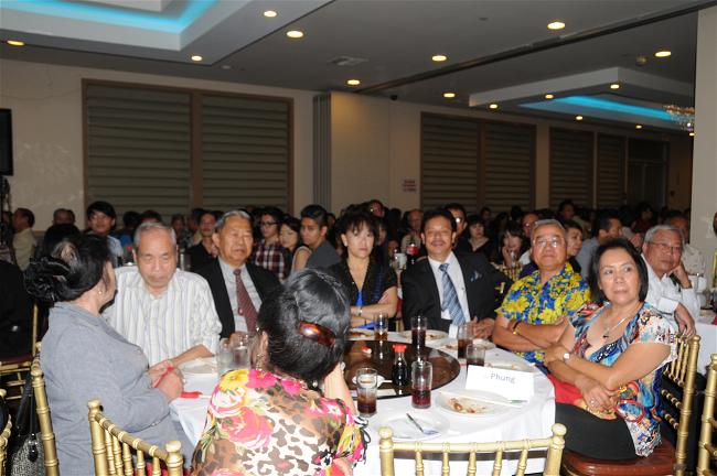 Hơn 500 đồng hương có mặt trong buổi tiệc. Điều hợp chương trình Xướng ngôn viên Minh Phượng và Nguyễn Mạnh Cường.