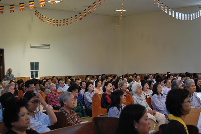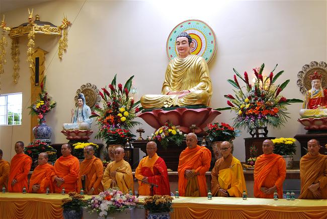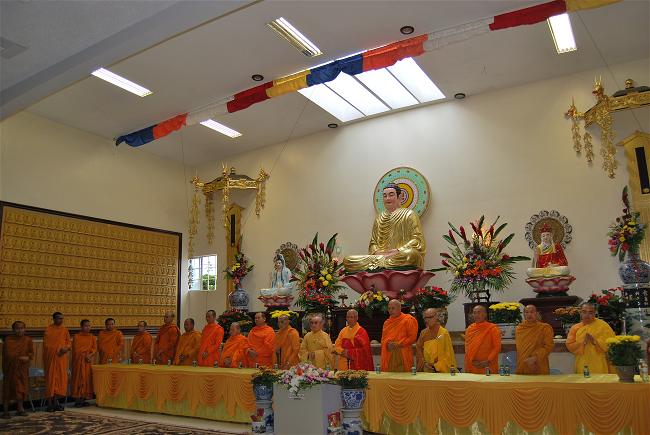 Lời phát biểu của Chư Tăng ngoại quốc, sau đó là phần cúng dường trai tăng. Sau phần cúng dường trai tăng, đồng hương Phât tử dùng cơm trưa và thưởng thức một chương trình văn nghệ Vu Lan do các nghệ sĩ thân hữu và Gia Đình Phật Tử trình diễn. Đến 2 giờ 30 chiều là lễ truyền thập giới, tam quy ngũ giới cho cư sĩ.