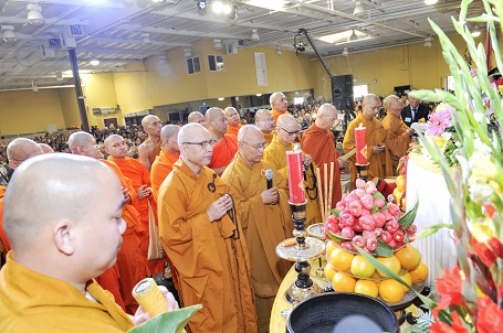 Chương trình bắt đầu từ 11 giờ sáng với phần thuyết pháp của Hoàng Thượng Thích Tâm Ngoạn , Hòa Thượng Thích Tâm Vân và Hòa Thượng Thích Viên Thành.