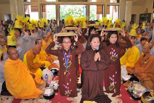 Sau chương trình văn nghệ là lễ Phổ Thí Cô Hồn, Lễ Quy Y và truyền Ngũ Giới cho một số đồng hương Phật tử.