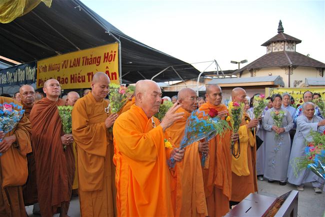 Tiếp theo là nghi thức Vu Lan. Sau lễ Vu lan là lễ phóng sinh, tiếp theo là phần thắp nến cầu nguyện cho thế giới hòa bình, chúng sinh an lạc, mỗi người cầm trên tay một ngọn nến cùng đi thiền hành trong khuôn viên chùa để nhất tâm cầu nguyện.