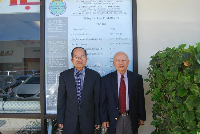 Westminster - Sáng Thứ Tư ngày 13 tháng 8 năm 2014, cựu Đại Tá Lê Khắc Lý, Chủ Tịch Lâm Thời Hội Đồng Chấp Hành Cộng Đồng Việt Nam Nam California và cựu Thẩm Phán Phạm Đình Hưng, Chủ Tịch Lâm Thời Hội Đồng Cố Vấn, Chủ Tịch Ủy Ban Tổ Chức Bầu Cử Cộng Đồng Việt Nam Nam California nhiệm kỳ 2014-2017 đã ghé thăm tòa soạn Việt Báo, nhân dịp nầy chúng tôi tiếp xúc với hai vị trên được qúy vị cho biết sau thời gian 3 tuần lễ kể từ ngày ra thông báo để các ứng cử viên nộp đơn ứng cử kể từ ngày 22 tháng 7 đến hết ngày 12 tháng 8 năm 2014 là hết hạn. Trong thời gian nầy Ủy Ban đã nhận được 5 người ứng cử vào Hội Đồng Chấp Hành và 4 người ứng cử vào Hội Đồng Giám Sát.