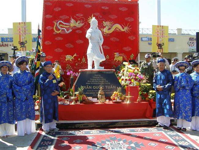 Tượng đài và đền thờ tọa lạc tại số 9078 Bolsa Ave, Thành Phố Westminster, CA 92683. Ngoài hàng ngàn đồng hương còn có qúy vị trong Hội Đồng Liên Tôn, qúy vị nhân sĩ, qúy vị đại diện các hội đoàn, đoàn thể, qúy vị dân cử, đại diện dân cử Thành Phố, Quận Hạt, Tiểu Bang, Liên Bang, rất đông các cơ quan truyền thông Việt, Mỹ.