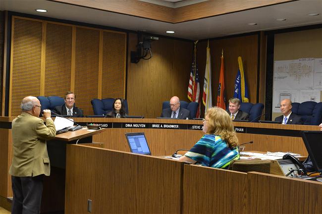 Sau phần nghi thức thường lệ, tiếp theo là phần trình bày của một số qúy vị trong cộng đồng để mong Hội Đồng Thành Phố chấp nhận ngày 26 tháng 10 hằng năm là Ngày Việt Nam Cộng Hòa. Trong số những người phát biểu có cựu Đại Tá Lê Khắc Lý, Chủ Tịch Lâm Thời Cộng Đồng Việt Nam Nam Cali, Ông Nguyễn Tấn Lạc, Trưởng ban vận động ngày Việt Nam Cộng Hòa hằng năm, Tiến Sĩ Lê Phước Sang, Hội Trưởng Hội Đồng Trung Ương Phật Giáo Hòa Hảo, Bảo Nguyễn, Ủy Viên Giáo Dục Học Khu Garden Grove và một số đồng hương, trong đó có những người Mỹ cựu quân nhân đã từng phục vụ tại Việt Nam cũng lên phát biểu yểm trợ cho Nghị Quyết nầy.