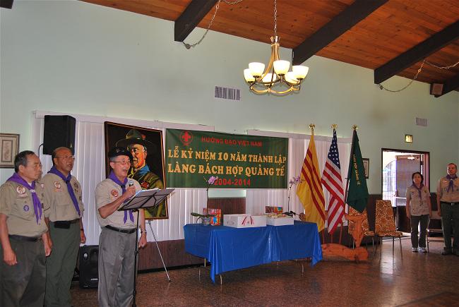 Sau phần nghi thức chào quốc kỳ Việt Nam Cộng Hòa, Hoa Kỳ, Hướng Đạo Ca và phút mặc niệm.