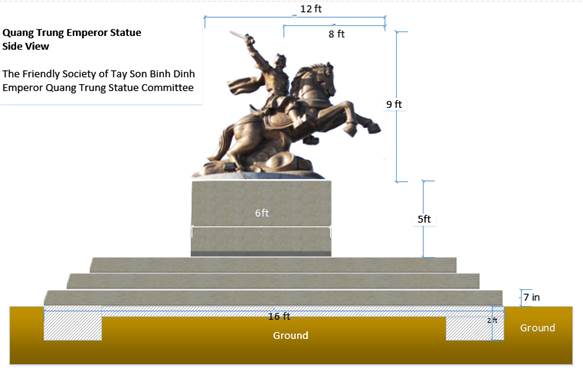 Bức tượng Vua Quang Trung bằng đồng, cao 9 feet. Chủ khu phố là người Việt Nam đã đồng ý cho đặt tượng đài mà không tính tiền. Ủy ban Xây Dựng Tượng Vua Quang Trung sẽ lo mọi chi phí đặt tượng đài. Ủy Ban đã được các đồng hương ủng hộ, dự tính khoảng 50 ngàn mỹ kim và số tiền sẽ thêm nữa trong thời gian tới.