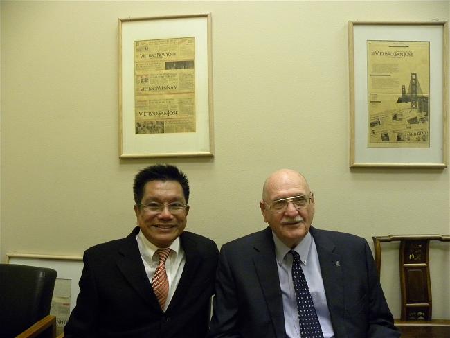 WESTMINSTER - Đương kim Thị Trưởng Thành Phố Garden Grove Bruce Broadwater, người tái tranh cử chức vụ Thị Trưởng Garden Grove trong cuộc bầu cử vào tháng 11 sắp tới, và ứng cử viên chức vụ Nghị Viên Thành Phố Garden Grove Phát Bùi trong cuộc trao đổi ngắn với báo chí hôm Thứ Năm, 9-10-2014, xin cử tri người Mỹ gốc Việt tại Garden Grove dồn phiếu cho họ để có cơ hội tiếp tục phục vụ cộng đồng.
