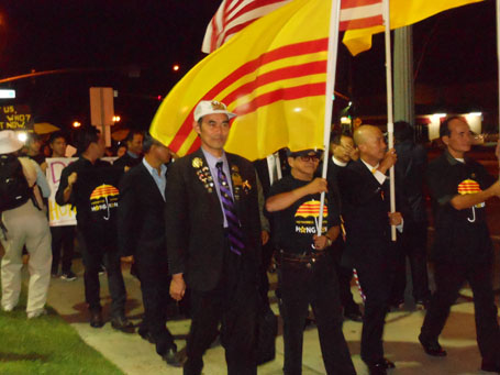 Đêm thắp nến và đi bộ diễn ra trước khu vực Lee’s Sandwiches nằm ngay trên đại lộ Bolsa, với sự tham dự của rất đông các bạn trẻ nhất là sinh viên học sinh tại Nam California, Hội Đồng Liên Tôn Việt Nam tại Hoa Kỳ cùng đại diện các hội đoàn, đoàn thể đấu tranh và quý đồng hương.