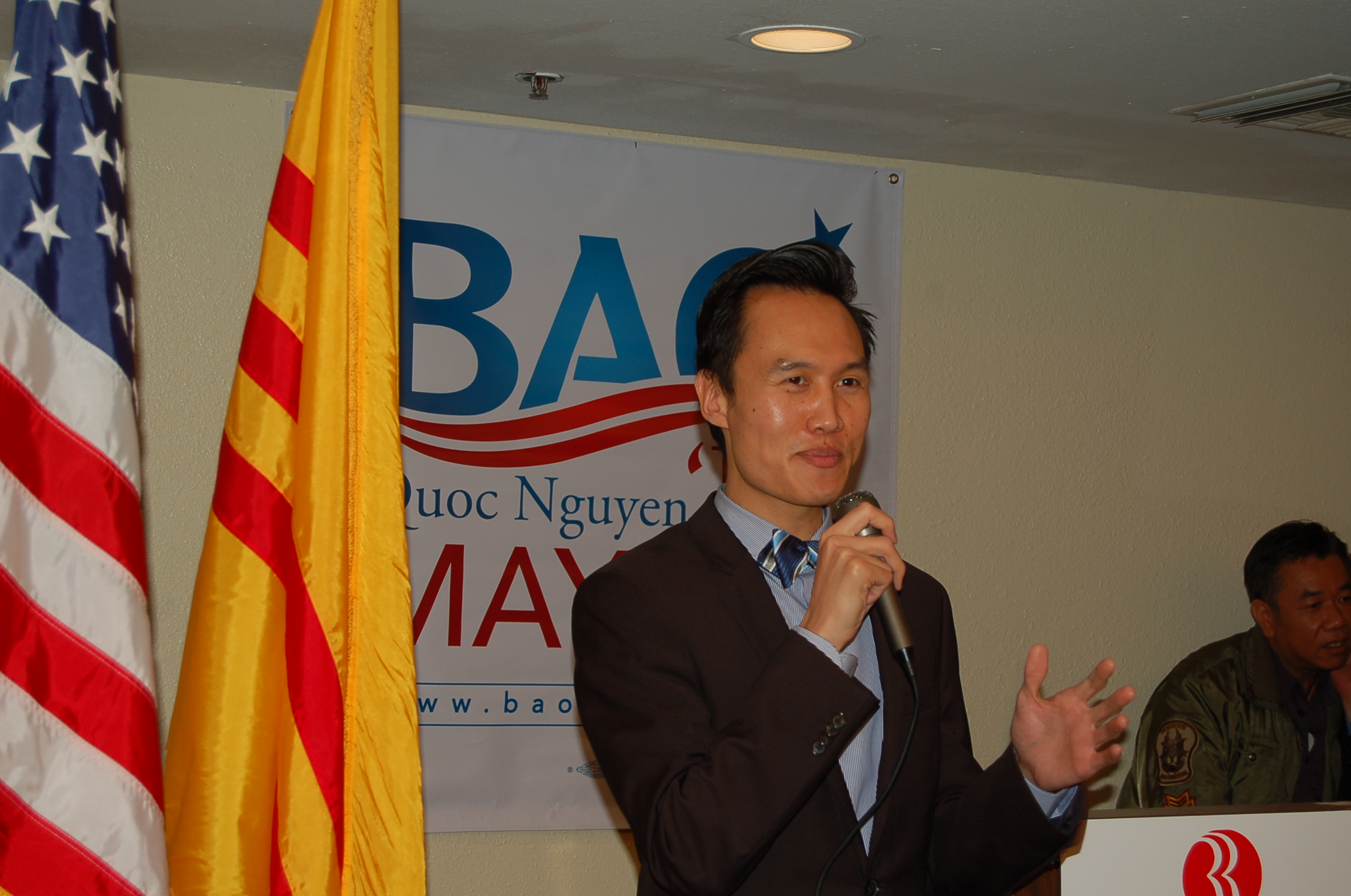 Tiến sĩ George Webb Chủ tịch học khu Garden Grove người khuyến khích Bảo Nguyễn ra ứng cử Thị Trưởng phát biểu: ông đề cập đến những cống hiến của Bảo Nguyễn trong thời gian là ủy viên giáo dục của học khu Garden Grove.
