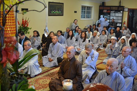 Buổi lễ tưởng niệm chấm dứt, Ban tổ chức mời qúy Chư tôn đức, qúy vị quan khách và đồng hương Phật tử dùng bữa cơm do Chùa Phổ Đà khoản đãi.