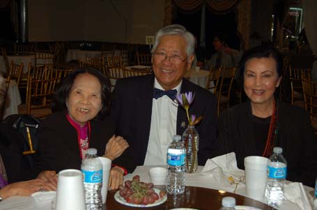 Giáo sư Nguyễn Thanh Liêm chúc mừng bà Minh Đức Hoài Trinh.
