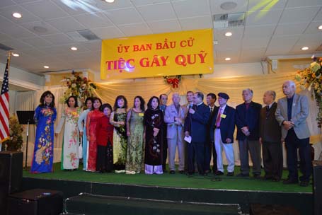 Garden Grove (Vân Giang) - Để có phương tiện cho việc tổ chức bầu cử Cộng Đồng Ngươời Việt Quốc Gia Nam California nhiệm kỳ 2015-2018 sẽ được tổ chức vào các ngày 4 và 5 tháng 4 năm 2015, một buổi tiệc gây qũy đã được tổ chức vào lúc 11 giờ trưa Chủ Nhật ngày 21 tháng 12 năm 2014 tại nhà hàng Seafood Palace. Tham dự buổi tiệc về phần quan khách có: cựu Thượng Nghị Sĩ Lou Correa, Thị Trưởng Thành Phố Westminster ông Tạ Đức Trí và phu nhân cùng các Nghị Viên Diana Carey, Sergio Contreras, Tyler Diệp; Thị Trưởng Thành Phố Garden Grove ông Nguyễn Quốc Bảo và các Nghị Viên Chris Phan, Phát Bùi và phu nhân; Giáo Sư Nguyễn Tư Mô, Giáo Sư Tiến Sĩ Nguyễn Thanh Liêm và phu nhân, Giáo Sư Trần Huy Bích, Giáo Sư Song Thuận, qúy vị Tổng Hội Trưởng, Hội Trưởng các Quân Binh Chủng Quân Lực Việt Nam Cộng Hòa, qúy vị đại diện các hội đoàn, đoàn thể, qúy hội đồng hương, qúy vị đại diện các cộng đồng có: Luật Sư Nguyễn Xuân Nghĩa Chủ Tịch Cộng Đồng Người Việt Quốc Gia Nam California, Luật Sư Trần Sơn Hà, Phó Chủ Tịch Ngoại Vụ, Kỹ Sư Nguyễn Mạnh Chí, Chủ Tịch Hội Đồng Giám Sát, Cộng Đồng Người Việt Quốc Gia Nam Cali và các thành viên trong Ban Chấp Hành cũng như Hội Đồng Giám Sát, ông Phan Kỳ Nhơn, Chủ Tịch Liên Ủy Ban Chống Cộng Sản và Tay Sai, ông Lê Quang Dật, nhân sĩ, ông Nguyễn Văn Lực, Chủ Tịch và Bà Đặng Kim Trang, Phó Chủ Tịch Cộng Đồng Người Việt San Diego, Ông Nguyễn Lâm, Hạt Los Angerles, ông Nguyễn Văn Cừ Hội Đồng Giám Sát Cộng Đồng Los Angerles và một số qúy vị mạnh thường quân.