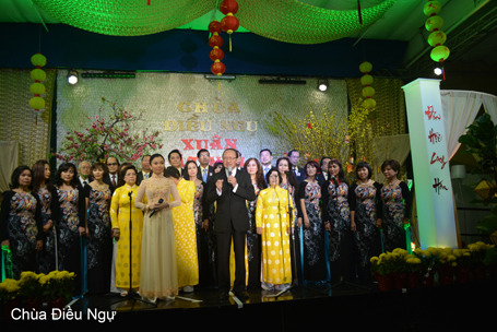 Tại Chùa Điều Ngự, thành phố Westminster, chương trình văn nghệ được tổ chức rất quy mô với phần trình diễn của nhiều ca nhạc sĩ tên tuổi và được Đài Truyền Hình IBC trực tiếp phát sóng. Trong phần nghi thức lễ ngoài phần cầu nguyện và chúc Tết của Hòa Thượng Viện Chủ Thích Viên Lý, còn có phần đọc Thư Chúc Xuân của Hòa Thượng Viện Trưởng Hội Đồng Điều Hành Tăng Đoàn GHPGVNTN. Trong đó có đoạn viết rằng, “Xuân mới, vạn vật trổi dậy, nhân tâm bừng sáng. Rất mong toàn dân Việt, trong cũng như ngoài nước, các nhà lãnh đạo tôn giáo, các bậc nhân sĩ, trí thức, các đảng phái, tổ chức, các đoàn thể dân sự, các sinh viên, học sinh… cùng nhau đoàn kết, cố gắng hơn nữa, để vận động nhằm thay đổi vận mệnh đất nước, đưa dân tộc thoát khỏi cảnh đói nghèo, hồi hộp, lo âu, nô lệ, khốn cùng.”
