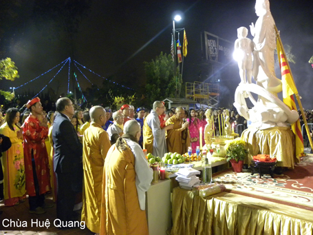 Tại Chùa Huệ Quang, thành phố Garden Grove, Hòa Thượng Viện Chủ Thích Minh Mẫn nhiều năm nay đã tổ chức văn nghệ đón xuân rất tưng bừng và đa dạng với phần trực tiếp truyền hình của Đài Little Saigon TV. Như mọi năm, năm nay hàng chục ngàn đồng hương đã đến chùa để dự lễ và thưởng thức văn nghệ qua phần trình diễn của nhiều ca nhạc sĩ tên tuổi. Trong phần nghi lễ Giao Thừa tiễn năm cũ đón năm mới, ngoài phần tụng kinh cầu nguyện, Hòa Thượng Viện Chủ cũng đã có lời chúc Tết đến chư tăng, ni và đồng hương Phật tử. Trong đó Hòa Thượng nhắc đến quá trình 40 năm có mặt và hình thành ngày càng lớn mạnh và thành công của cộng đồng người Việt tị nạn. Hòa Thượng cũng không quên cảm ơn tất cả mọi người đã hỗ trợ cho cộng đồng Phật Giáo Việt Nam tại hải ngoại nói chung và Hoa Kỳ nói riêng ngày càng phát triển vững mạnh.