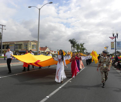 Dẫn đầu đoàn diễn hành khoảng 10 đơn vị tham dự là Trường Trung Học La Quinta tại thành phố Westminster, sau đó là đoàn cung nghinh đất thiêng Tổ Quốc do những nhân sĩ trong Hội Đền Hùng đảm trách.