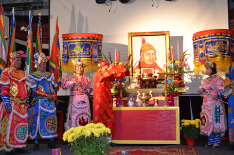 Sau nghi thức khai mạc, nhà văn Lê Anh Dũng đặc trách đoàn rước kiệu hướng dẫn đoàn Lân Gia Đình Phật Tử Bát Nhã dẫn đầu đoàn rước Bài Vị Vua Quang Trung vào an vị trên lễ đài. Đoàn rước bài vị có quân sĩ cầm cờ, hai viên quan Văn, quan Võ với áo mão chỉnh tề tay cầm gươm đi hai bên nhà vua. Theo sau có Hội Bà Triệu mặc toàn y vàng rực rỡ do bà Hội Trưởng Lệ Giang Phan Thị Chín điều động. Đoàn rước tiến vào lễ đài và mọi người đứng nghiêm trang chào đón. Bài vị được Chánh Tế đặc trên bàn thờ trước chân dung Đại Đế Quang Trung, và bắt đầu nghi thức tế lễ cổ truyền, trong đó có phần đọc Văn Tế, ca ngợi công đức của vua Quang Trung. Tiếp đến là các vị lãnh đạo tinh thần và quan khách lên niệm hương.