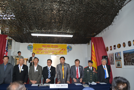 Điều hợp chương trình buổi họp, Ông Nguyễn Mạnh Chí (Chủ Tịch Hội Đồng Giám Sát CĐNVQG) và ông Nguyễn Văn Hòa (Chủ Tịch Hội Đồng Giám Sát CĐVN Nam Cali) Sau phần nghi thức chào quốc kỳ Việt-Mỹ và phút mặc niệm. Hai vị điều hợp mời Kỹ sư Ngãi Vinh và LS Nguyễn Xuân Nghĩa lên bàn chủ tọa. Sau đó Kỹ sư Ngãi Vinh mời thêm các ông Nguyễn Kim Bình, Phan Văn Chính, Lê Tự Hà. LS. Nguyễn Xuân Nghĩa mời thêm LS. Trần Sơn Hà, Lê Nguyễn Thiện Truyền và ông Hứa Trung Lập lên bàn chủ tọa đoàn.
