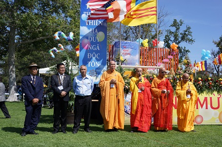 Đúng 2 giờ Nghi thức khai mạc Đại Lễ Phật Đản Phật Lịch 2559 với sự tham dự của rất đông Chư Tôn Đức Tăng Ni, Đại diện các Chùa và các tự viện, phái đoàn Hội Đồng Liên Tôn Việt Nam tại Hoa Kỳ, phái đoàn Tăng Đoàn GHPGVNTN Hải Ngoại do Hòa Thượng Thích Viên Lý chủ Tịch Hội Đồng Điều Hành hướng dẫn, hàng ngàn đồng hương Phật Tử đã tham dự suốt trong 3 ngày Đại Lễ về phía quý vị dân cử: Thượng Nghị Sĩ Tiểu Bang Janet Nguyễn, Giám Sát Viên Andrew Đỗ, Thị Trưởng Thành Phố Westminster và phái Đoàn, Nghị Viên Chris Phan thành phố Garden Grove, Nghị Viên Micheal Võ thành phố Fountain Valley, cưụ Chánh Án Nguyễn Trọng Nho và phu nhân, ông Nguyễn Văn Tánh và Luật Sư Nguyễn Thanh Phong Cộng Đồng người Việt tại New York....