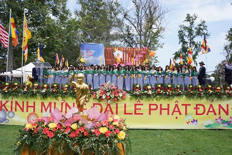 "Phật Giáo Việt Nam với hơn 2 ngàn năm lịch sử và 40 năm lich sử Phật Giáo Việt Nam tại hải ngoại ở nơi đây hình bóng Chư Tôn Đức Tăng Già cùng toàn thể chư vị thiện nam tín nữ Phật Tử trang trải tấm lòng quý kính của người con Phật mến thương để hân hoan chào mừng mùa Phật Đản Phật Lịch 2559"