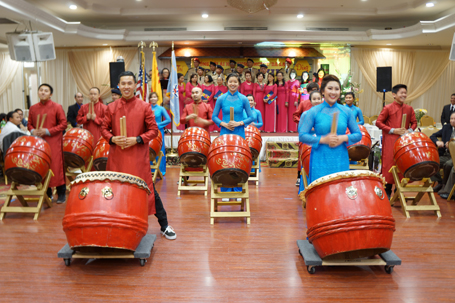 Tiệc mừng và văn nghệ do Nguyễn Trãi các khoá và gia đình trình diễn với đoàn trống Thiên Ân.