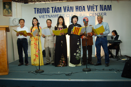 Chương trình ra mắt CD Trạch Gầm Từ Thơ Đến Nhạc được mở đầu với nghi thức chào quốc kỳ VNCH, Hoa Kỳ, phút mặc niệm