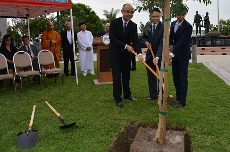 Sau phần nghi thức, tất cả qúy vị trong Hội Đồng Thành Phố, HT. Thích Viên Lý và qúy vị trong Hội Đồng Liên Tôn mỗi người một cái xẻng cùng xúc đất để đổ vào gốc cây.