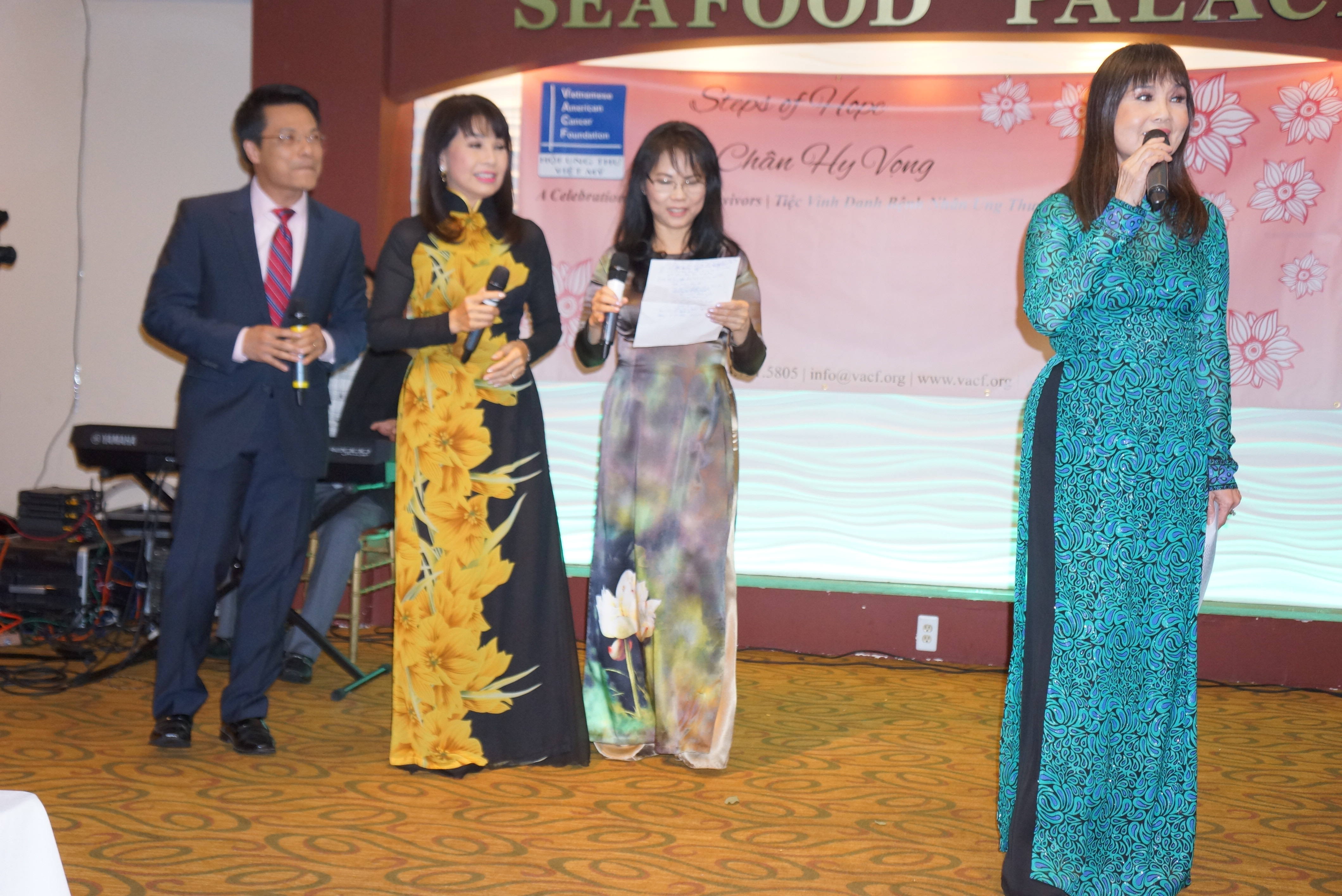 Buổi tiệc hôm nay có chủ đề là "Bước Chân Hy Vọng" chúng ta có rất nhiều bước chân như bước chân của người bệnh cũng như bước chân của những người trong hội, chúng tôi cùng dắt tay nhau đi dò dẫm suốt mấy chục năm nay, bây giờ chúng ta thấy sự ủng hộ của Cộng Đồng ngày càng cao, những người bị bệnh thì cởi mở rất nhiều và hy vọng sống của những người mắc bệnh Ung Thư ngày càng cao hơn.