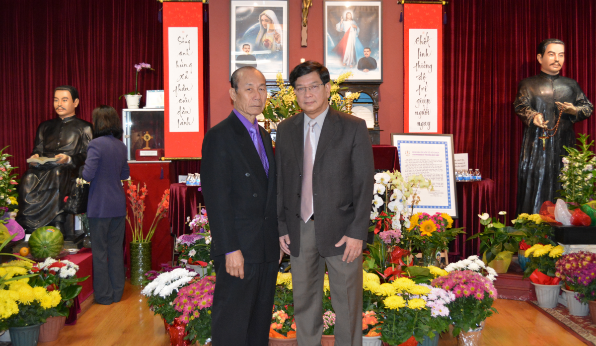 Thánh lễ do Đức Giám Mục Đa Minh Mai Thanh Lương, nguyên Giám Mục Phụ Tá Giáo Phận Orange (về hưu) chủ tế. Cùng đồng tế với Đức Giám Mục có linh mục Tôma Nguyễn Hoàng Diệu (Phó Cáo Thỉnh Viên Án Phong Thánh), linh mục niên trưởng Mai Khải Hoàn và 9 linh mục khác cùng với thầy Phó Tế Chu Bình.