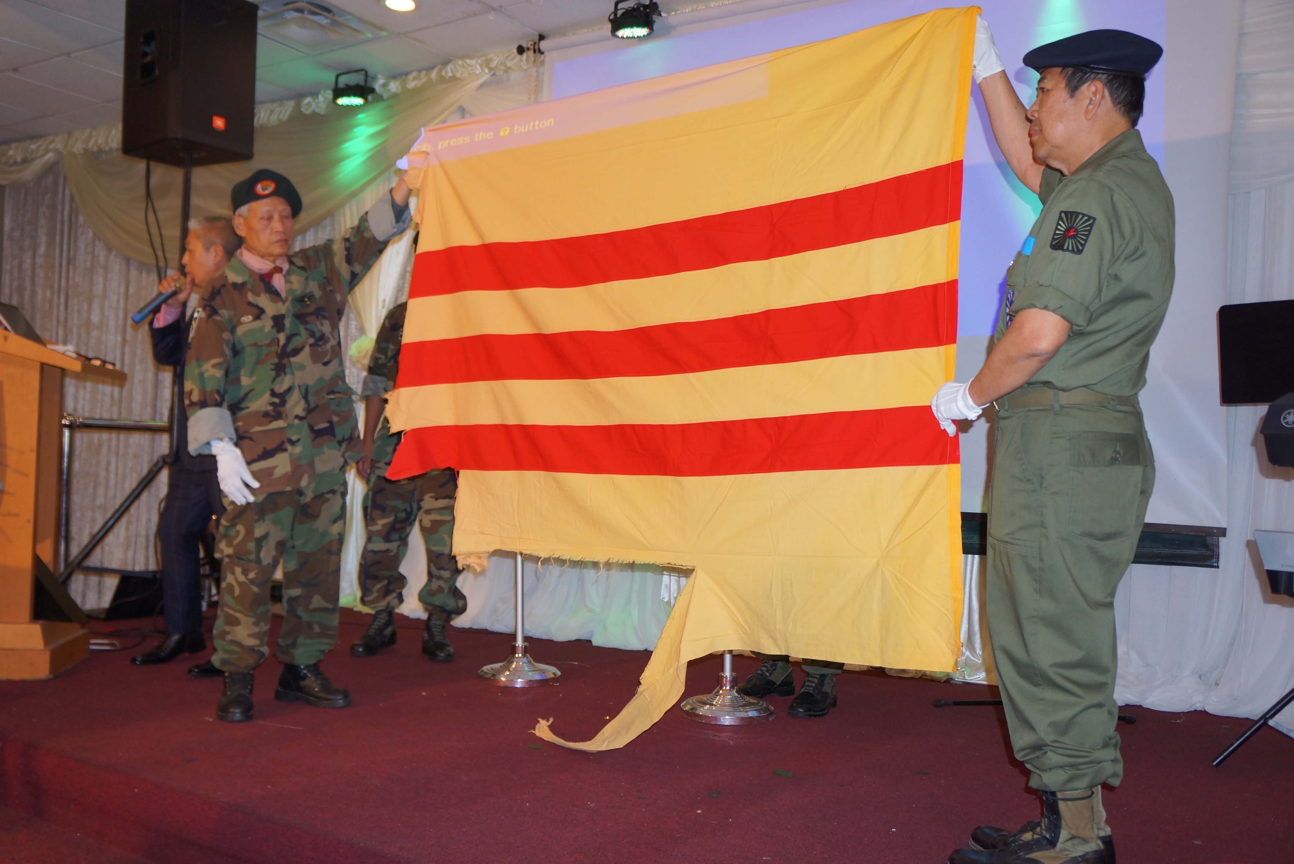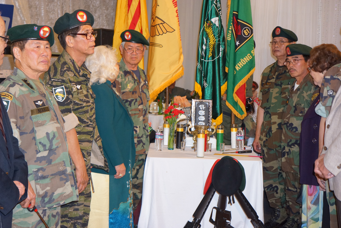 Nghi Thức trao cờ của Hội Đồng Hương Biên Hoà, trao lại Cờ VNCH do một quân nhân Hoa Kỳ trong thời gian phục vụ tại một tiền đồn ở Việt Nam cùng các đơn vị QLVNCH, trước khi trở về Hoa Kỳ sau thời gian phục vụ anh đã được những người lính VNCH tặng anh lá cờ treo ở tiền đồn nơi anh phục vụ, về lại Hoa Kỳ cách đây 3 năm, trước khi mất anh đã trao lại cho một người bạn với lời nhắn gởi: xin trao lại cho những người Việt Tị Nạn và nhắc họ một điều là phải luôn trung thành với lá cờ đó lá cờ của sự Tự Do, Dân Chủ của máu xương biết bao ngươi đã đổ ra để bảo vệ và hôm nay Hội Ái Hưũ Đồng Hương Biên Hoà xin trao lại cho Đơn Vị Lực Lượng Đặc Biệt QLVNCH. lá cờ được ban tổ chức nhận và đặt trang trọng trên bàn thờ trong phần tưởng niệm các chiến sĩ Lực Lượng Đặc Biệt đã hy sinh vì Tổ Quốc.