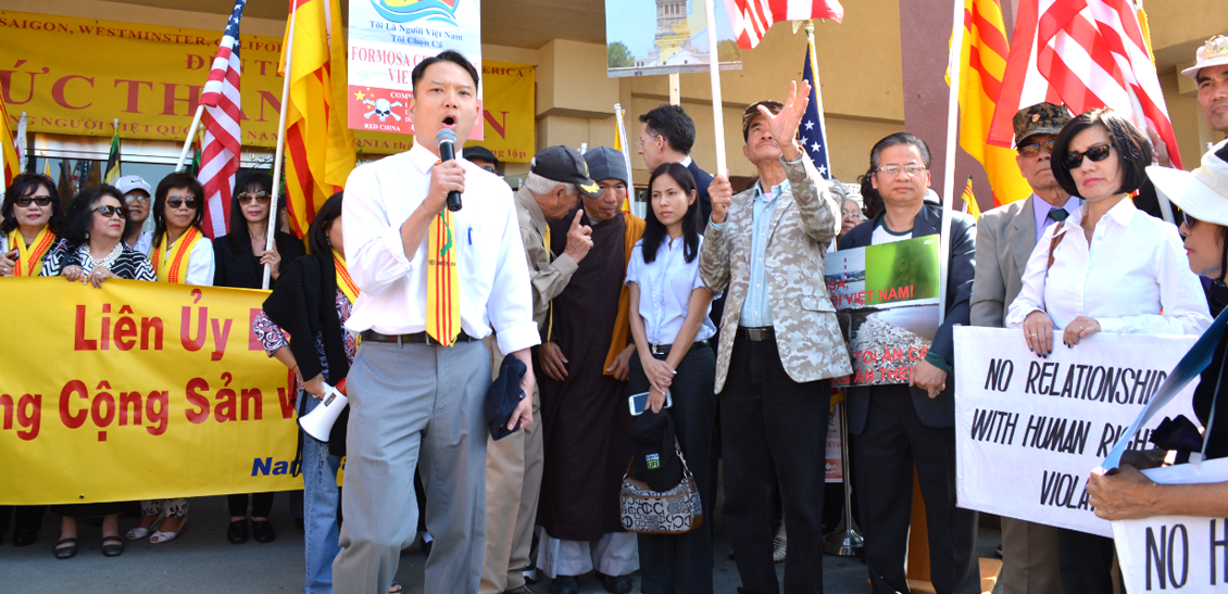 Ông Phan Kỳ Nhơn Chủ Tịch Uỷ Ban chống Cọng Sản và tay sai: Chúng tôi luôn cùng đồng hành với đồng bào trong nước khi trong nước có tổ chức biểu tình phản đối nhà cầm quyền Cọng Sản, thì tại hải ngoại chúng tôi lập tức tổ chức biểu tình để tiếp lửa đấu tranh với đồng bào trong nước