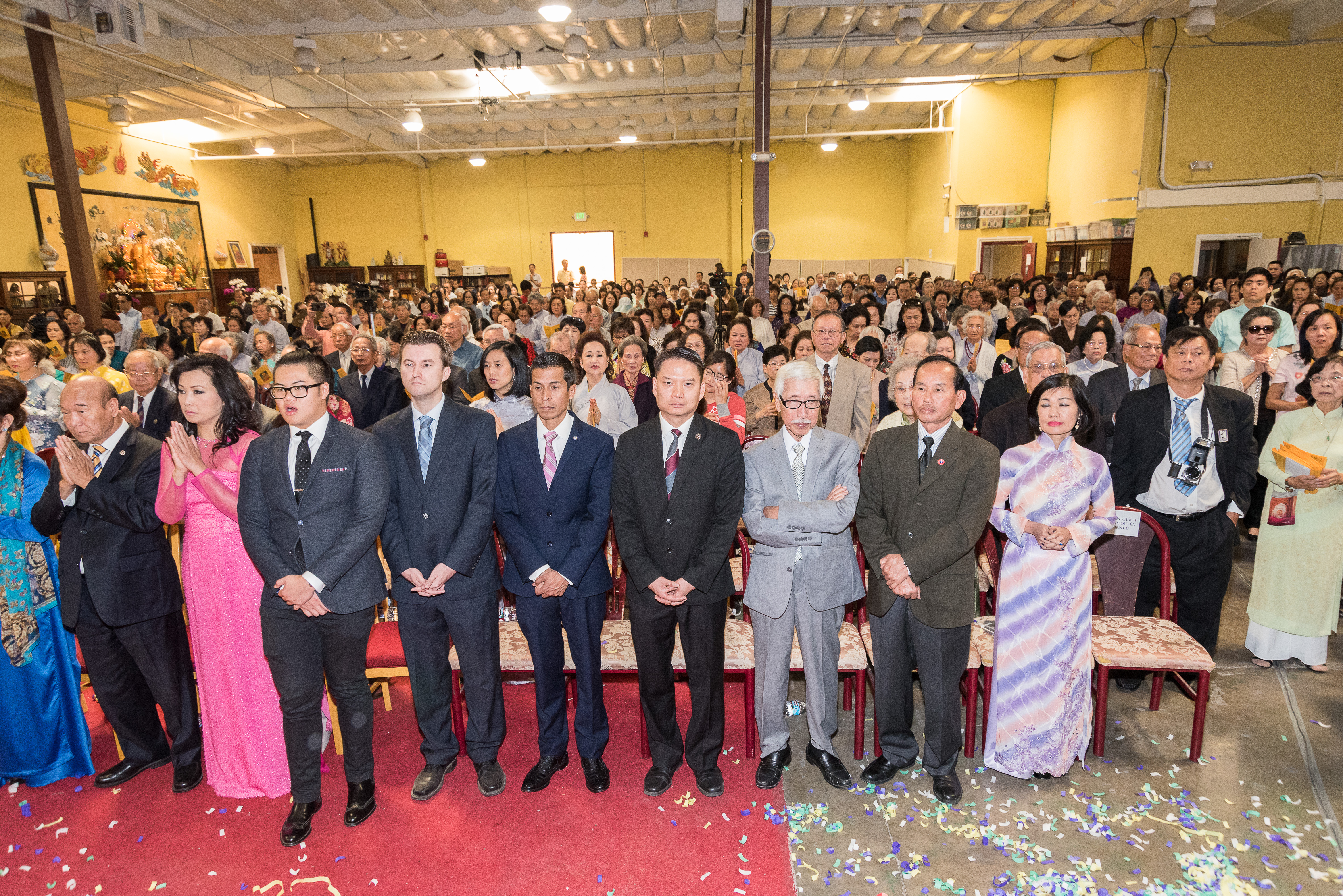 Nghi thức chào quốc kỳ VNCH, Hoa Kỳ, Phật Giáo Kỳ, phút mặc niệm và nhập từ bi quán với sự điều hợp chương trình của MC. Minh Phượng, đạo hữu Ái Cầm - Thái Tú Hạp cùng với Ban Hợp Ca CLB Tình Nghệ Sỹ và Ca Đoàn Chùa Điều Ngự.