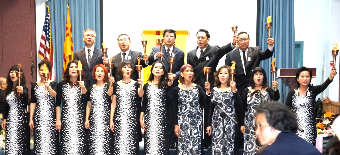 Mở đầu là nghi thức chào quốc kỳ VNCH, Hoa Kỳ, phút mặc niệm.